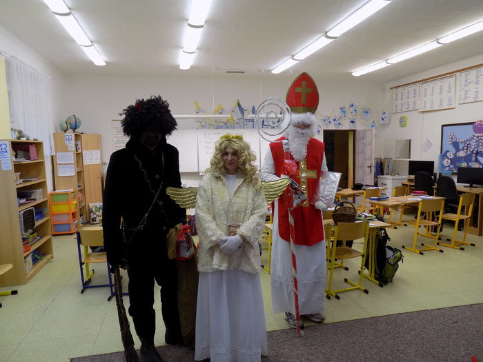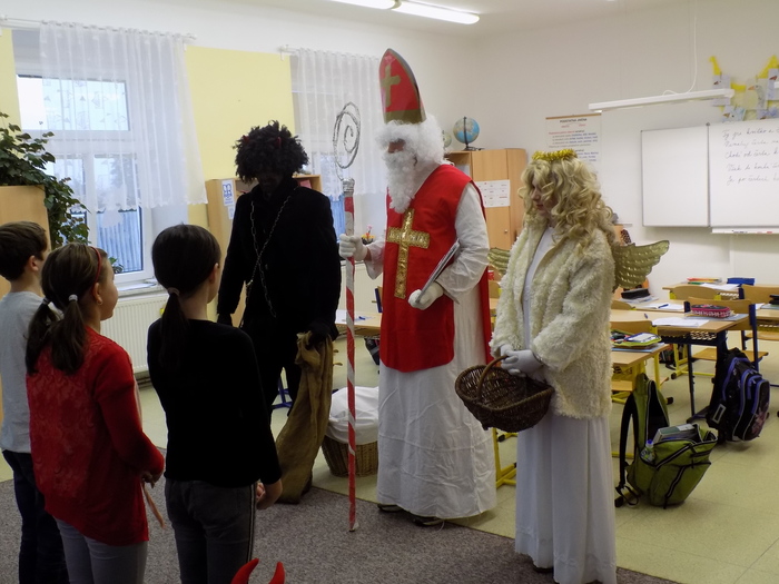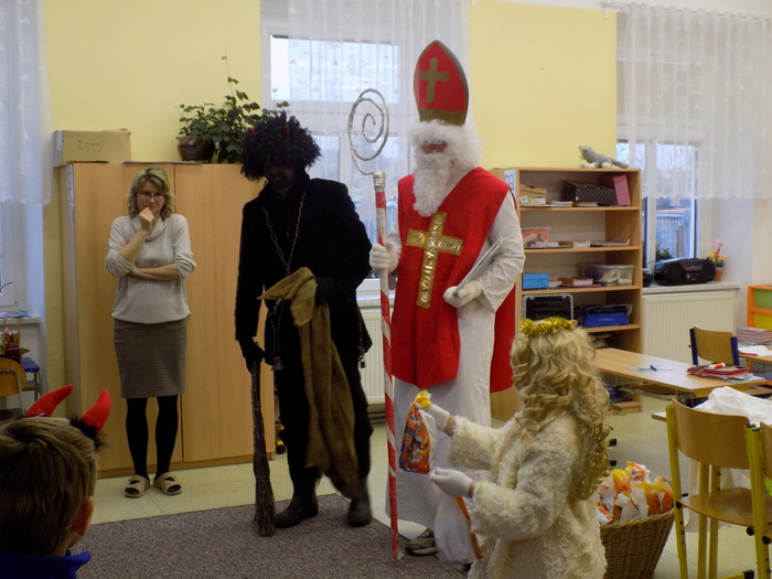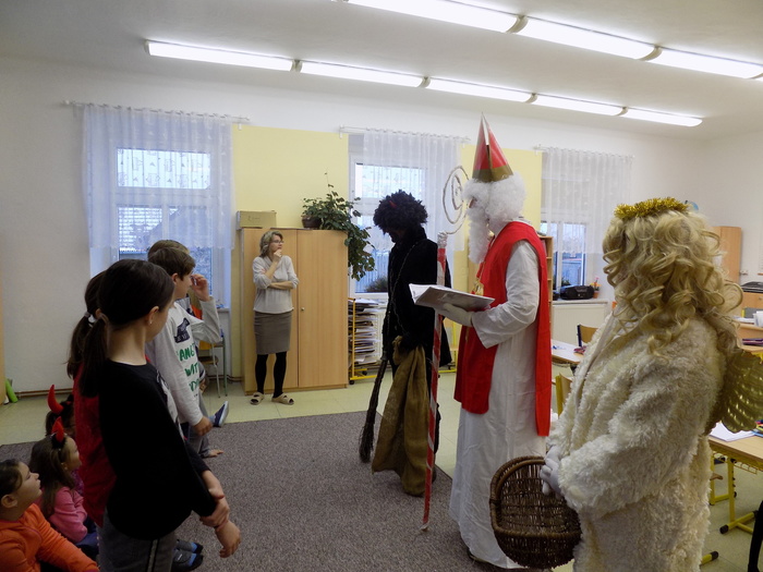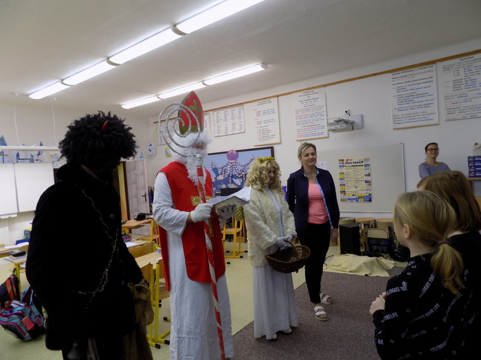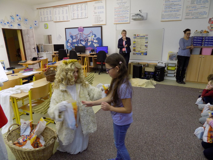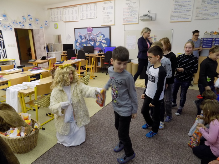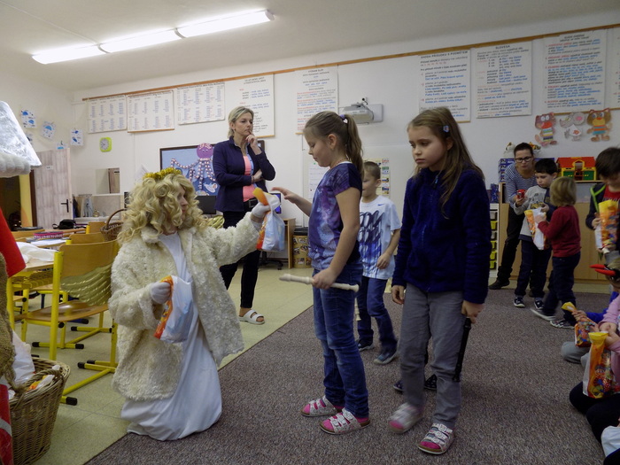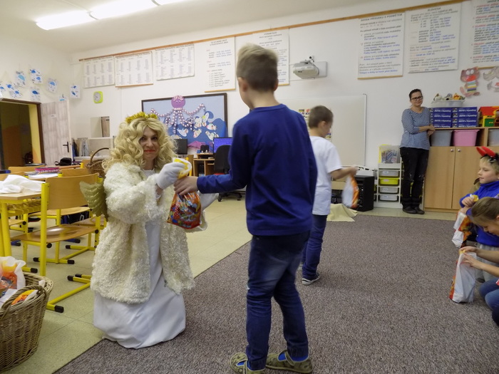 Ani na hříšníky ze základní školy nezapomněla svatá trojice a čert některým pořádně "nadělil". Tu pravou nadílku pak za básničku nebo písničky dostali od andílka všichni.